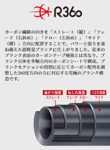 縦・横・斜め(2方向)の計4方向にカーボンを配置する「R360構造」。